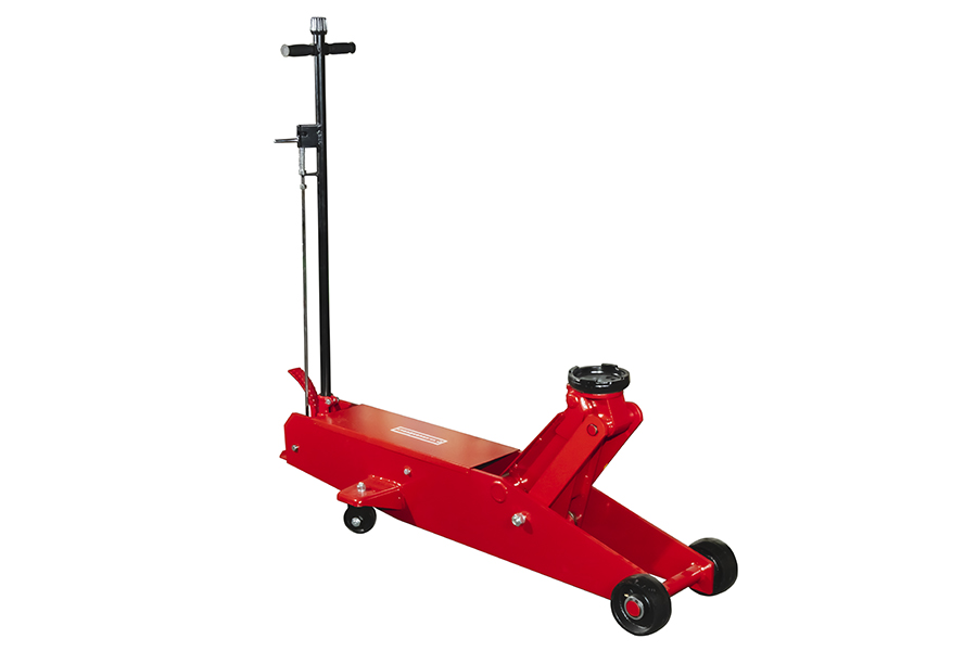 Подкатной гидравлический домкрат имеет ручной привод и предназначен для подъема машины при осуществлении ремонтных работ — к примеру, замены колес. Он отлично подойдет для личного использования на даче, в гараже или для работы на небольшой шиномонтажной станции.